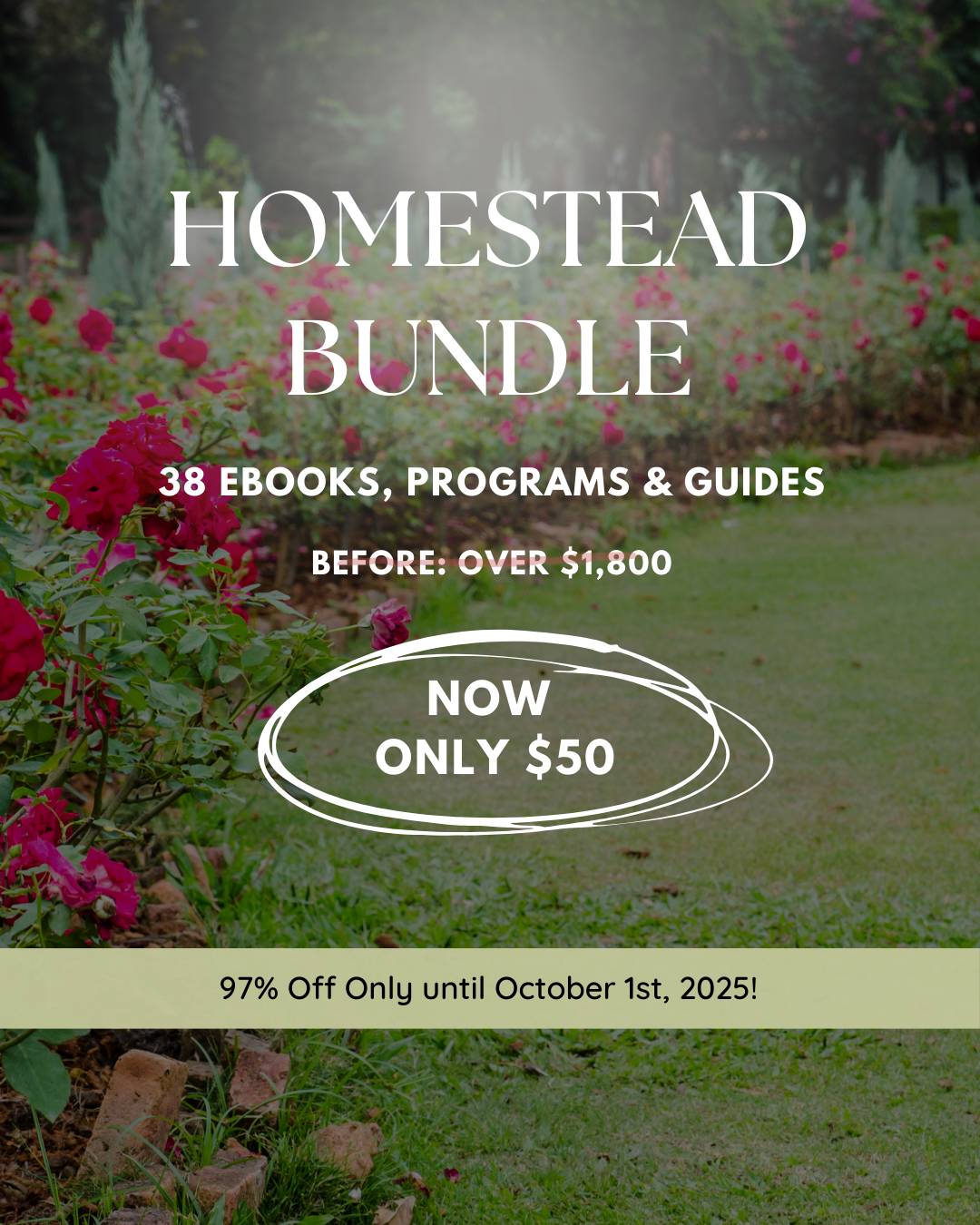 An Off Grid Life Helping you become more self-reliant. Final Call Hi friend, This is it. The 2025 Homestead Bundle closes tonight at 11:59 PM EST—and once it’s gone, it’s gone for good. You’ll get 38 ebooks, guides, and courses covering everything from gardening and canning to sourdough, herbal remedies, homeschooling, and off-grid systems. Altogether worth over $1,800, but you can still grab it for $50 today. Even if you only dive into one resource—say, the sourdough course or the pantry...