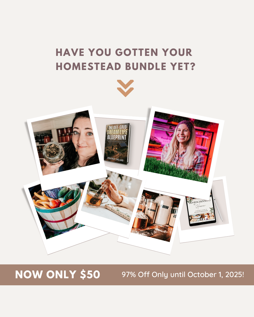 An Off Grid Life Helping you become more self-reliant. Final Call Hi friend, This is it. The 2025 Homestead Bundle closes tonight at 11:59 PM EST—and once it’s gone, it’s gone for good. You’ll get 38 ebooks, guides, and courses covering everything from gardening and canning to sourdough, herbal remedies, homeschooling, and off-grid systems. Altogether worth over $1,800, but you can still grab it for $50 today. Even if you only dive into one resource—say, the sourdough course or the pantry...
